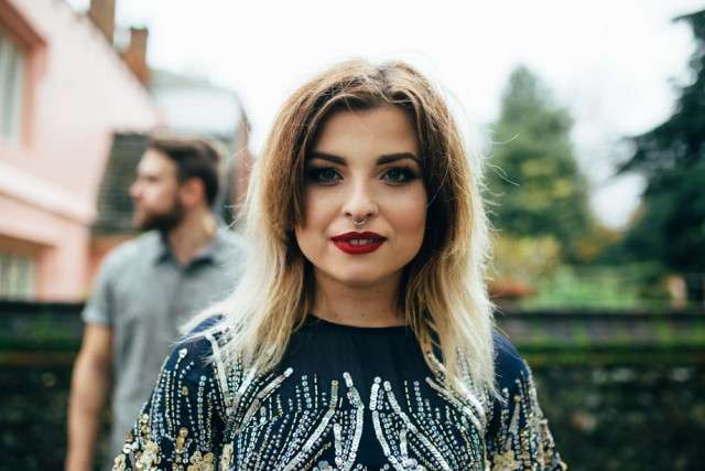 there is a blonde girl in colour wearing a red coat. This fits with the social